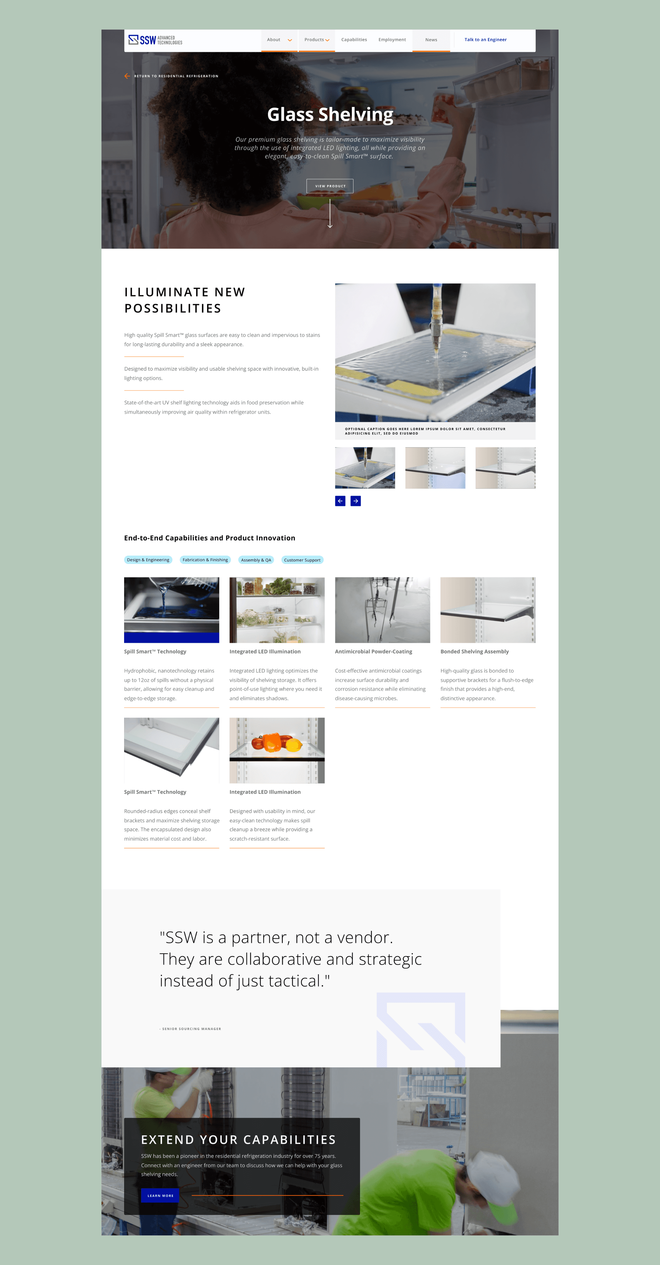 After establishing their new branding with another agency, SSW came to The Durkan Group for a website redesign. Our creative director setup the design direction and once approved I took over as the main designer on the project, with oversight from my creative director. Implementing styles set up on the home page, I created the rest of the design, and curated site photography to bring their new website to life.